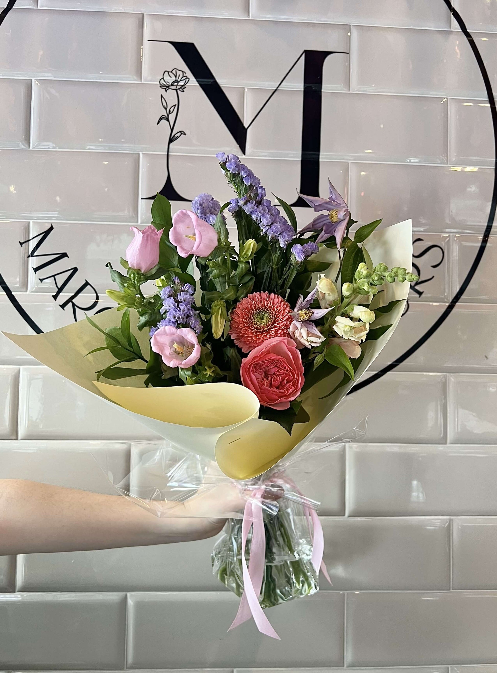 La disponibilité des fleurs varie selon le marché et la saison. Les fleurs peuvent donc être remplacées par des variétés similaires, tout en respectant l'atmosphère, le style et l'harmonie du bouquet présenté.